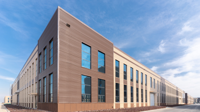 項目墻面系統業(yè)主精心挑選了赭黃+蘇黃兩種色彩搭配,面板選用上海寶鋼高鋅鋁鎂PE涂層,配以780型大波紋橫鋪安裝方式,輔以藍色玻璃幕墻裝飾,使整個(gè)墻面系統線(xiàn)條流暢,實(shí)現光影交錯的分層效果,美觀(guān)大方,堅固耐用,歷久彌新。
