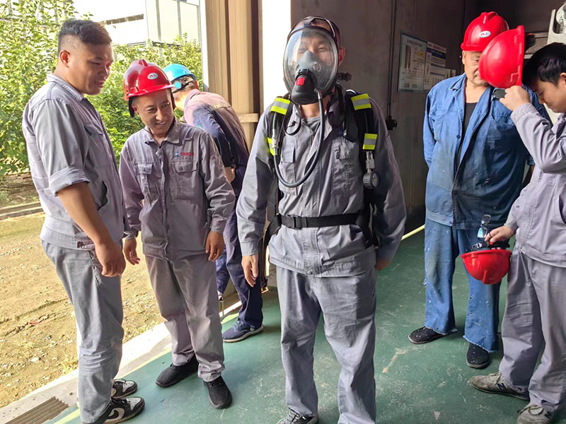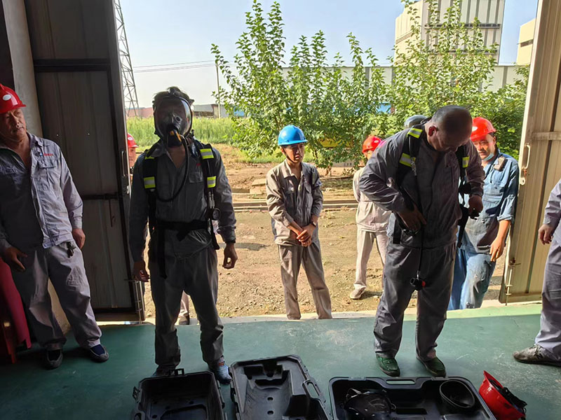 安環(huán)綜合部組織鍍鋅事業(yè)部開(kāi)展氣保站氫氣火災事故應急演練,鍛煉員工使用空氣呼吸器及滅火器的熟練度